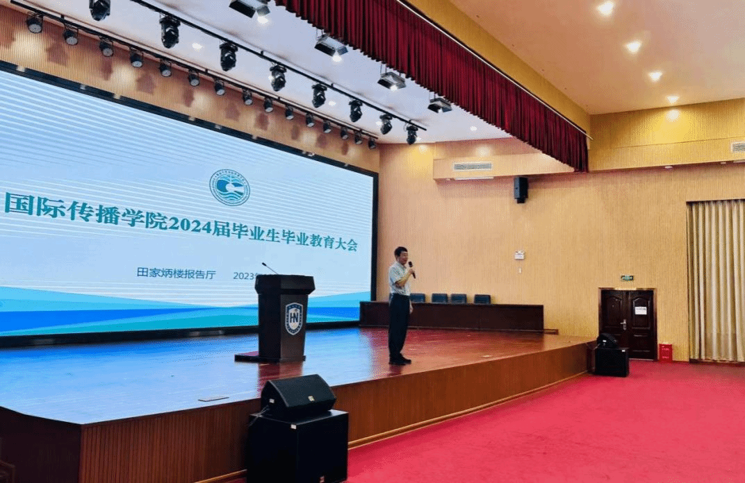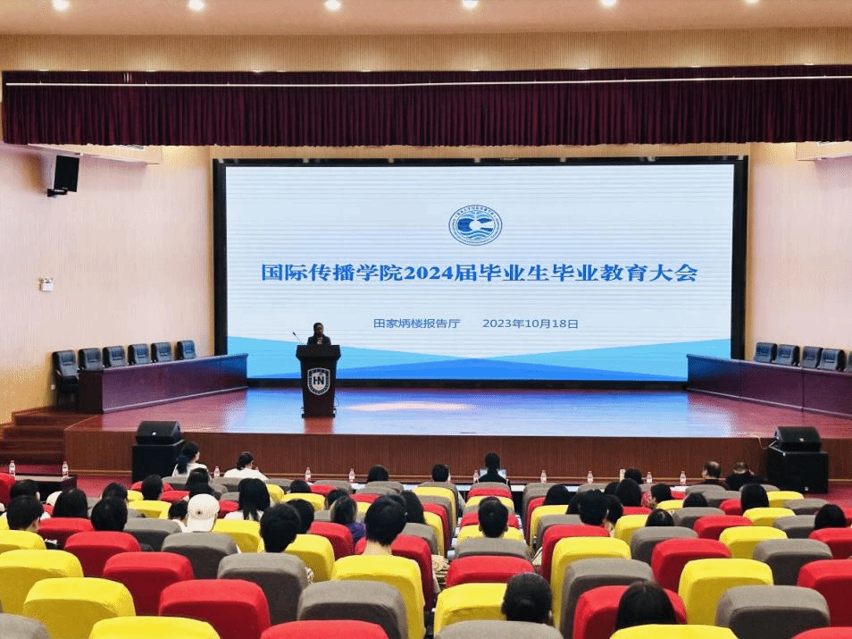 10月18日下午,澳门pg官方电子平台国际传播学院2024届毕业生毕业教育会议在海甸校区田家炳楼二楼报告厅举行,2024届全体研究生和本科生参加毕业教育大会,会议由党总支书记谢辉凡主持。