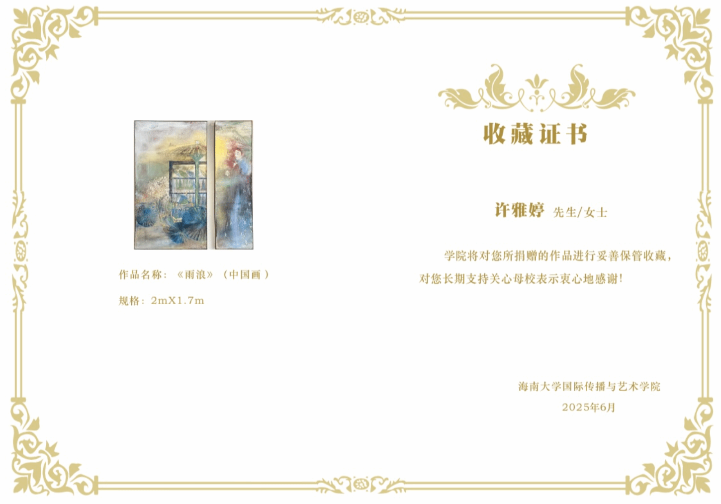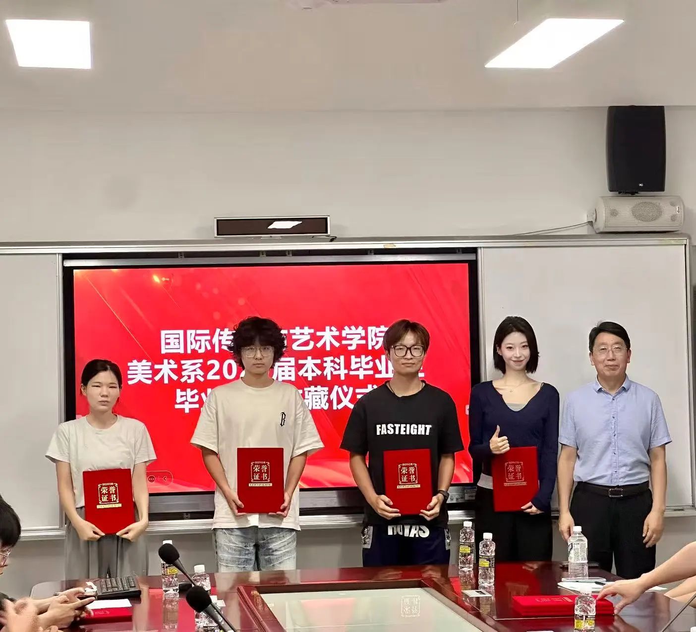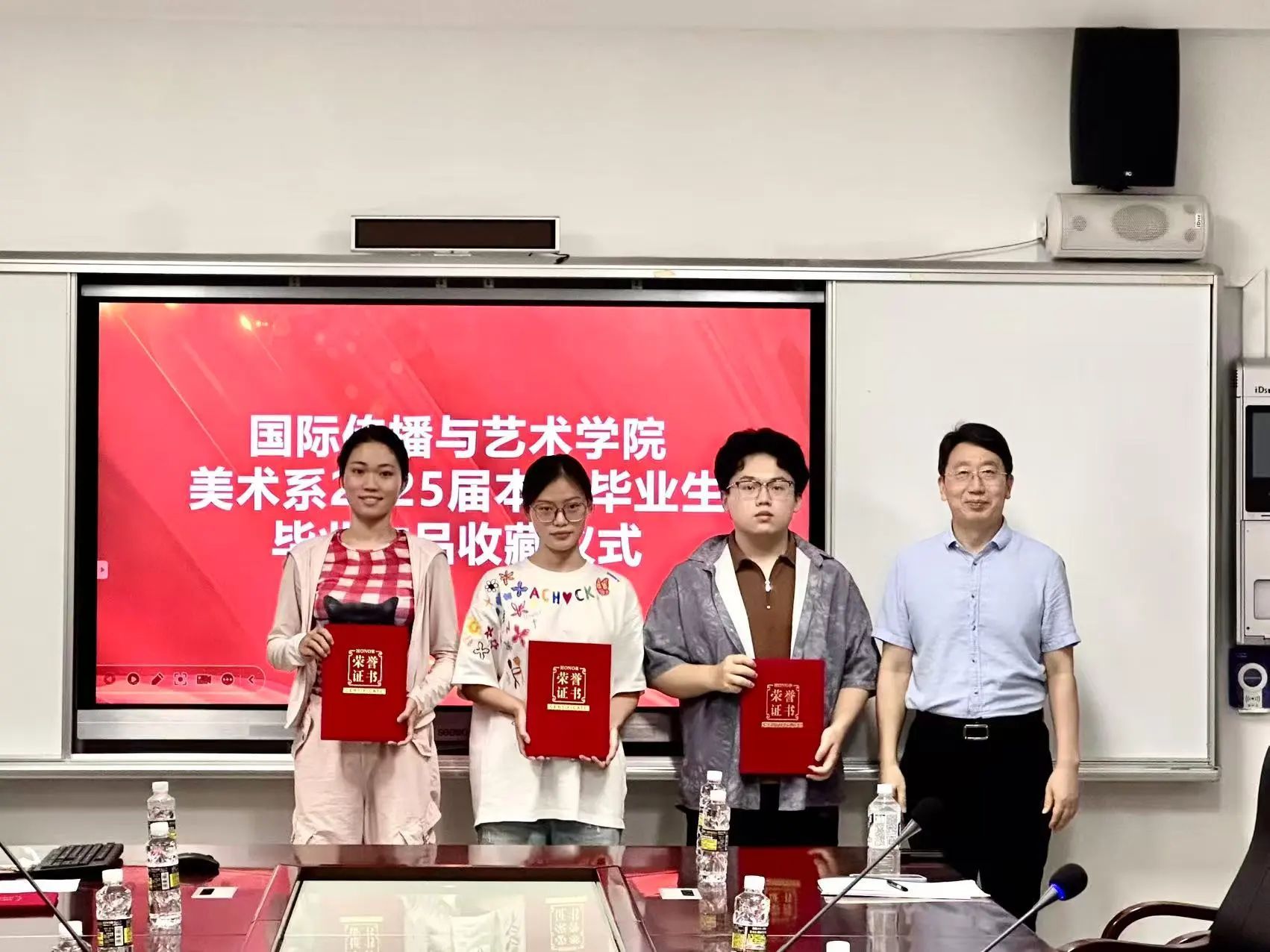 仪式上,郑立波院长对毕业生的艺术才华和努力表示高度赞赏,强调学院对美术教育的重视和对学生创作成果的认可。他对2025届毕业生的美好未来提出了殷切希望,并分享了自己的大学故事和生活。院长表示艺术是时代的镜像,是思想的凝练,更是同学们的精神灯塔。作品被学院收藏是同学们的荣耀,更是连接母校的情感纽带,为自己的一生种下美好记忆的种子。参加收藏仪式的同学代表表达了自己对学校、学院和老师的感激之情,表示自己的作品能被学院收藏感到非常荣幸,对自身具有很大的激励作用,感恩老师们的培养和指导。