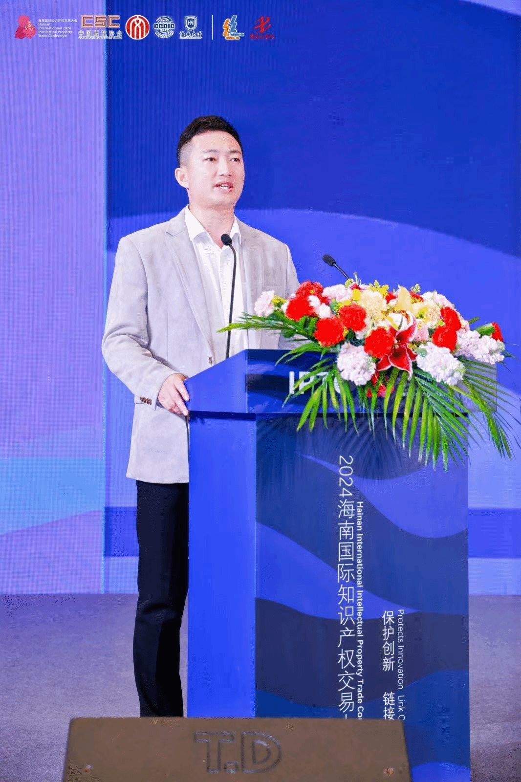 在上午进行的主旨演讲中,海南自由贸易港知识产权法院党组成员、副院长刘冠兵,从“为创新而生,肩负创新使命;护创新而行,助推新质生产力发展;循创新而进,将改革向纵深推进”等三个方面,介绍了海南自贸港知识产权法院在服务保障中国特色自由贸易港建设、加大知识产权司法保护力度,营造良好营商环境方面的工作。