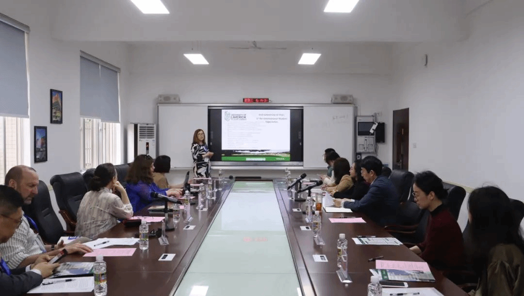 随后,利莫瑞克大学交流团与学校、学院相关领导办公楼会面,进行办学情况交流。