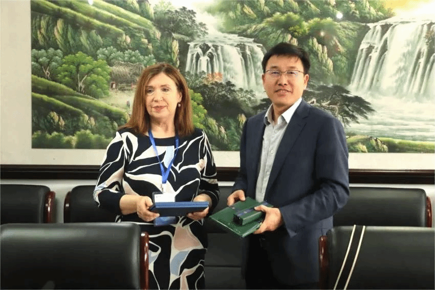 ▲陈骏副校长与Angela Farrell女士互赠两校纪念品