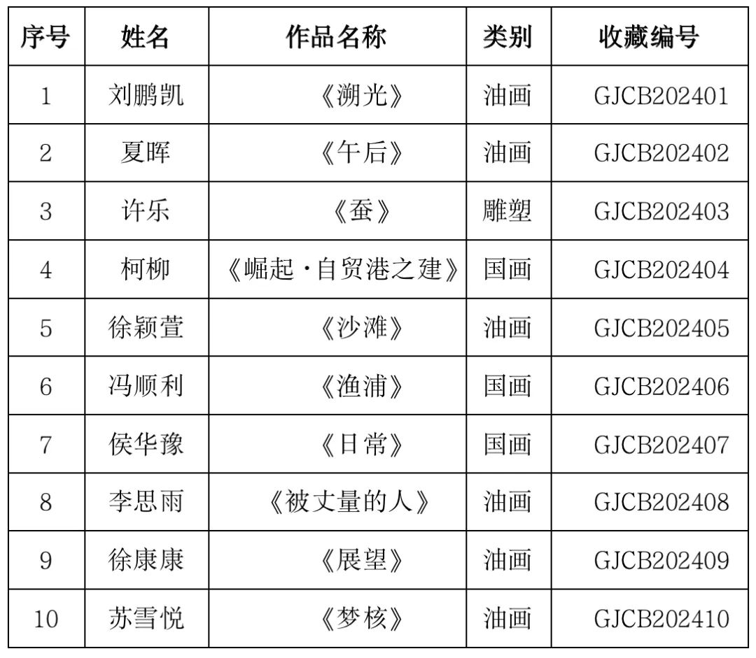 2024年6月14日,澳门pg官方电子平台2024届毕业生优秀美术作品收藏仪式在田家炳楼举行,有10件毕业作品被收藏,涵盖了油画、国画、雕塑等艺术门类。