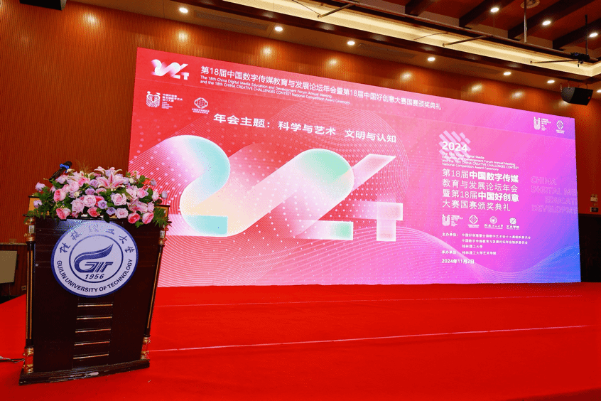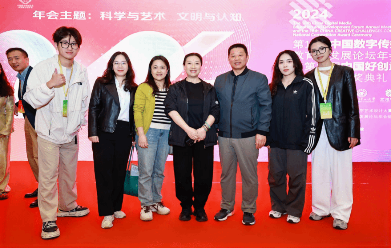 2024年11月1日—3日,第18届中国数字传媒教育与发展论坛年会暨第18届中国好创意暨全国数字艺术设计大赛国赛颁奖典礼在桂林隆重举行。澳门pg获奖师生代表唐丽春教授、邓晰副教授、徐扬副教授、裴彦西、徐蓉蓉同学参加了本次颁奖典礼。
