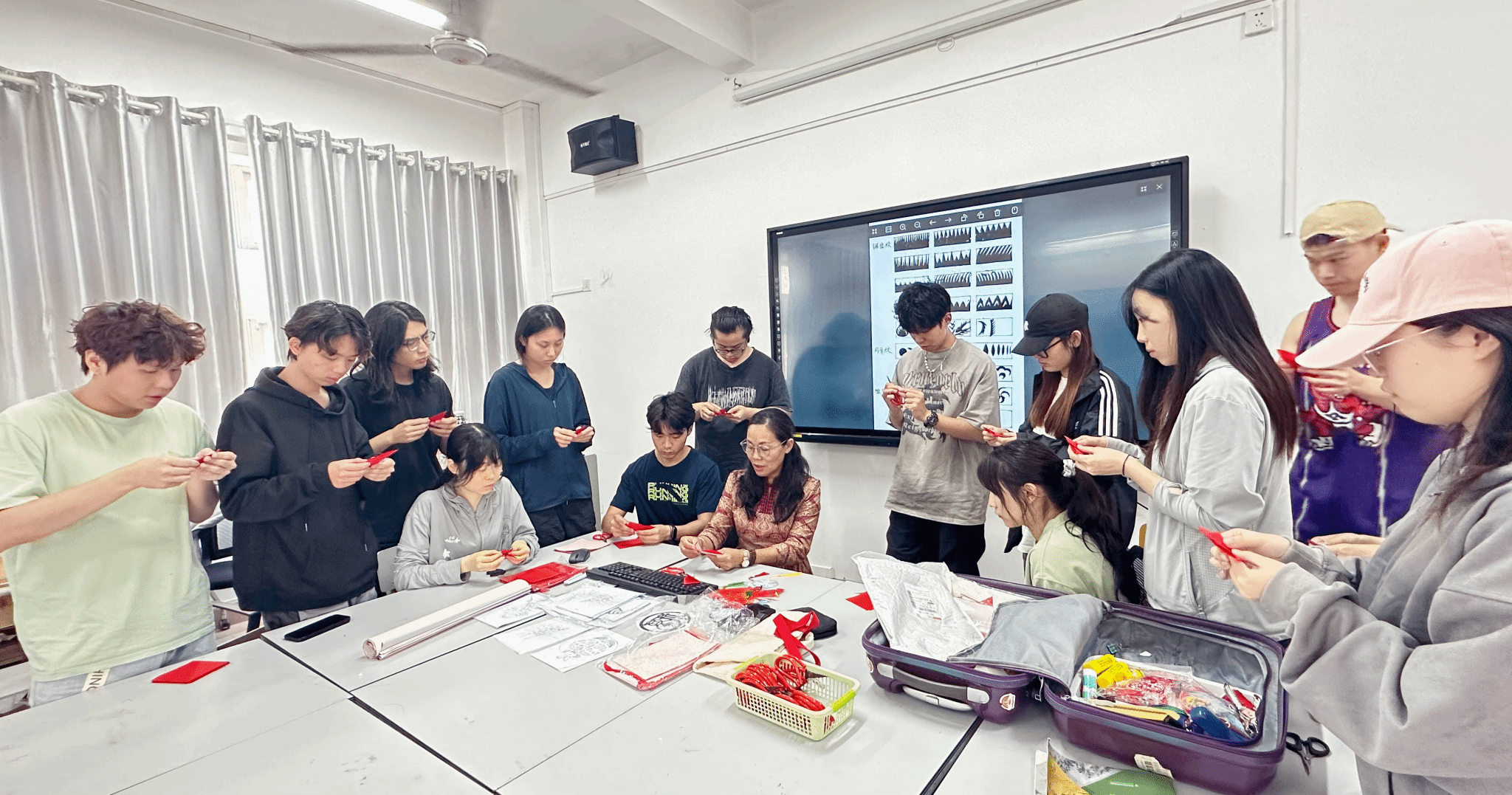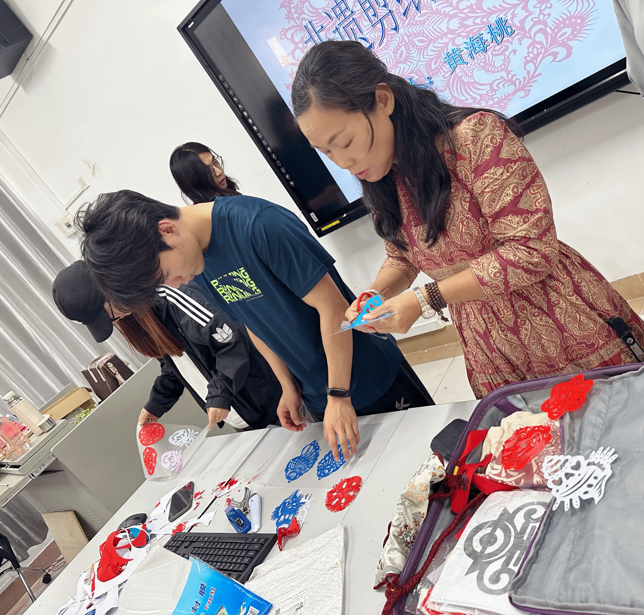 2025年3月26日下午,海南省剪纸学会会长、省级工艺美术大师、非遗传承人黄海桃应邀走入澳门pg设计系大三课程—《旅游产品设计与制作》的课堂,与课程主讲教师张哲共同探索了剪纸艺术与海南文旅设计的融合路径。课程以“非遗活化+设计创新”为核心,通过理论讲授、技艺示范与创作实践,引导学生挖掘剪纸语言的地域表达潜力,现场气氛热烈。