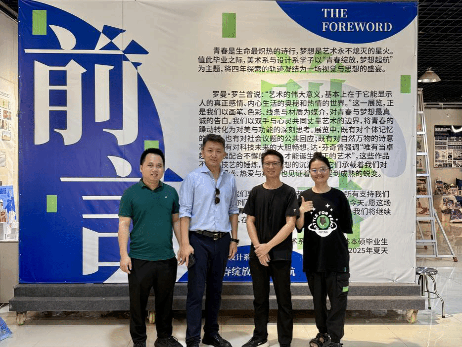 6月5日下午,海口市旅游商品与装备协会会长郗志强、秘书长陈勇周及海流文化创意设计有限公司负责人陈明智一行参观澳门pg2025届设计系本科毕业展。副院长元志东、实验室与设备管理中心孙焱老师、综合办于东平老师、设计系方星星老师陪同参观并讲解。