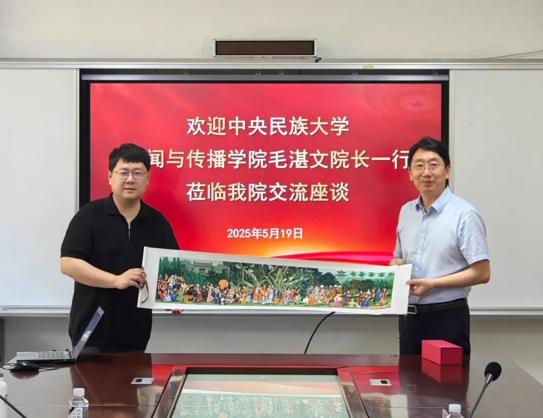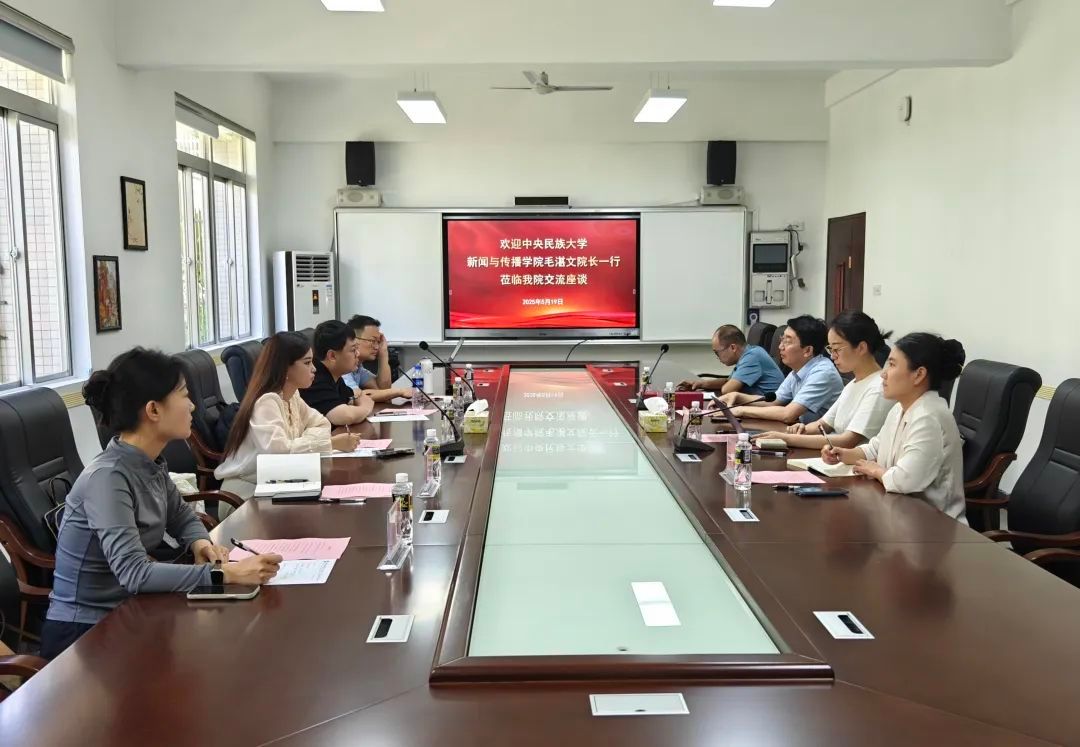 2025年5月19日上午,中央民族大学新闻与传播学院院长、党委副书记毛湛文教授一行到访澳门pg,双方在田家炳楼102会议室举行座谈,围绕学科建设和专业建设、国际化合作办学、人才培养模式改革、师资队伍建设、思政教育与专业思政的做法与经验等展开深入交流。
