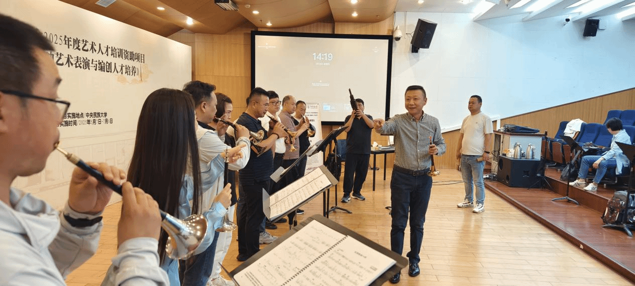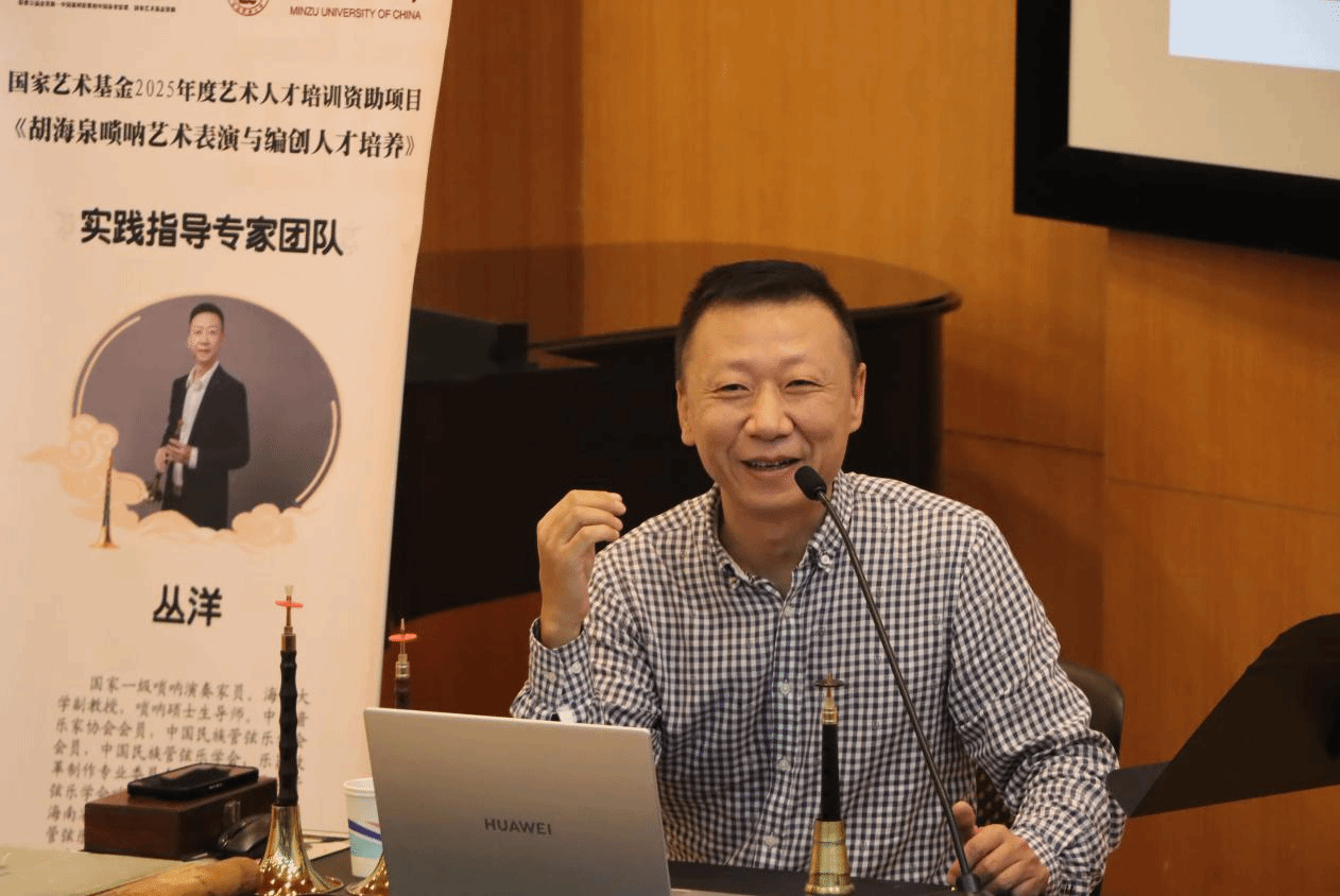 2025年5月23日,澳门pg音乐系丛洋副教授,受中央民族大学音乐学院胡美玲老师之邀,出席国家艺术基金2025年度艺术人才培训资助项目活动——《胡海泉唢呐艺术表演与编创人才培养》,为全国各省40多名优秀学员进行唢呐专家授课。