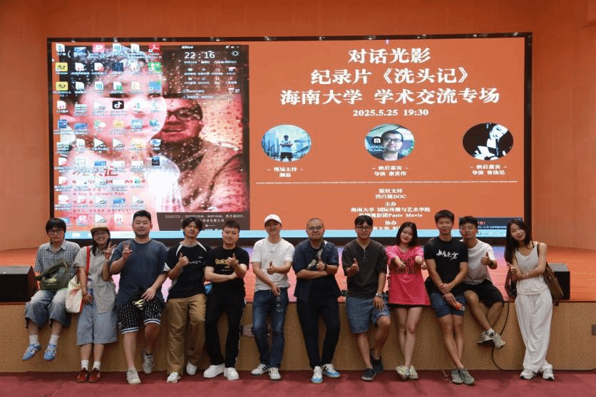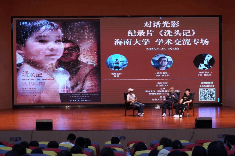映后学术交流会由澳门pg官方电子平台戏剧影视文学系副教授颜磊主持,《洗头记》导演康世伟与知名电影创作者曾汤尼博士亲临现场与观众交流对话。现场气氛热烈,观众提问涉及纪实影像创作、“私影像”叙事策略、亲子情感表达等诸多议题。