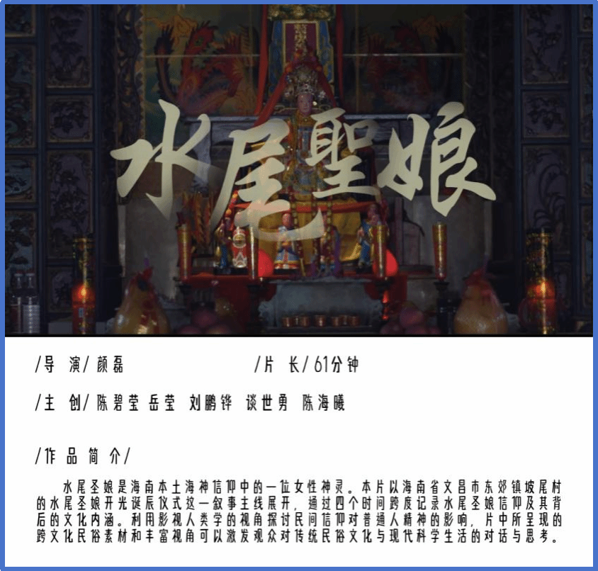 近日,2025年第九届中国成都国际非遗节·第二届非遗影像展映活动公布入围名单,澳门pg戏剧影视文学系副教授颜磊导演的两部作品《水尾圣娘》与《三云与久香的羌年》入选。
