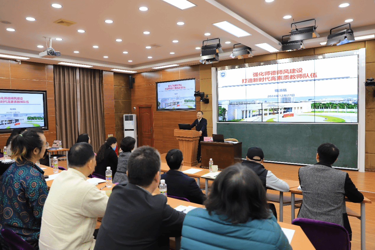 12月27日下午,澳门pg官方电子平台校长、中国科学院院士骆清铭在三号教学楼211教室为澳门pg官方电子平台作师德师风专题宣讲。学校党政办、人事处相关负责同志出席会议,学院领导班子与全体教职工参加会议。宣讲会由学院党委书记何映敏主持。