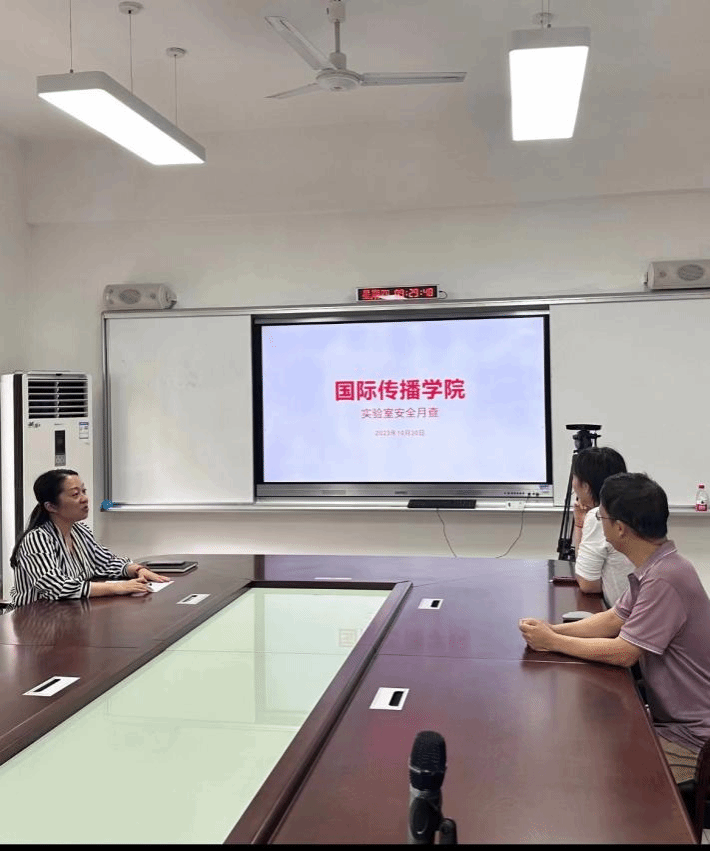 为做好实验室安全工作,切实消除实验室安全隐患,2023年10月31日,澳门pg开展10月份实验室常规安全检查工作。本次检查由学院党总支书记谢辉凡牵头,本次安全检查主要对传播实验室,影视实验室,演播厅消防设施,室内用电进行检查,扎实做好实验室的安全检查工作。学院办公室、实验室相关人员参加了实验室安全检查。