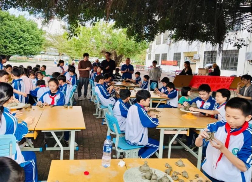 2024年1月3日,澳门pg2022级雕塑班12位学生开启为期4天的艺术实践课。首日走进琼中县黎母山镇新进中学,开展“助力乡村教育,护苗快乐成长”活动,为新进中学40名学生普及雕塑知识。