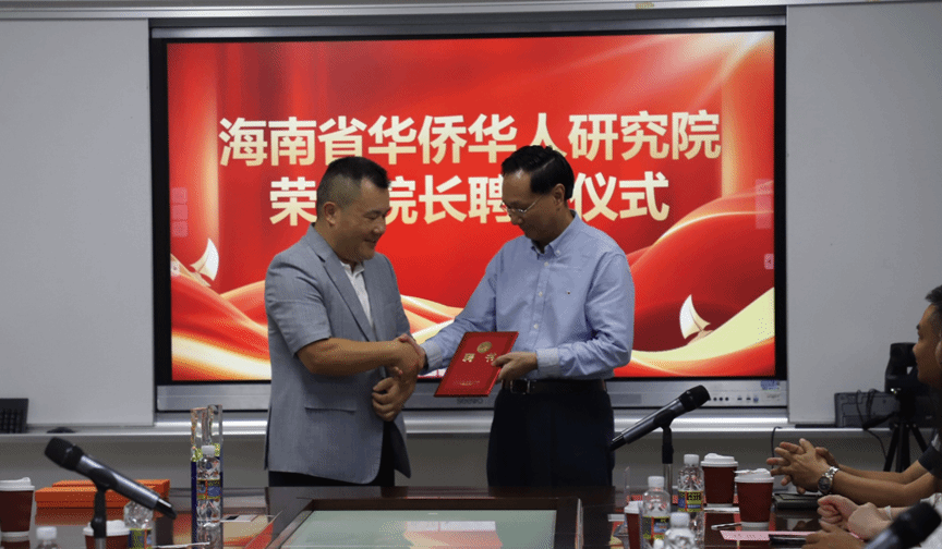 彭小仕先生表示,很荣幸被聘为海南省华侨华人研究院的荣誉院长,这既是一份荣誉,更是一份责任。海南省华侨华人研究院作为华侨华裔研究领域的重要平台,自己作为研究院的一员,未来将会与团队一起为华侨华人研究事业的繁荣发展贡献更多的智慧与力量。