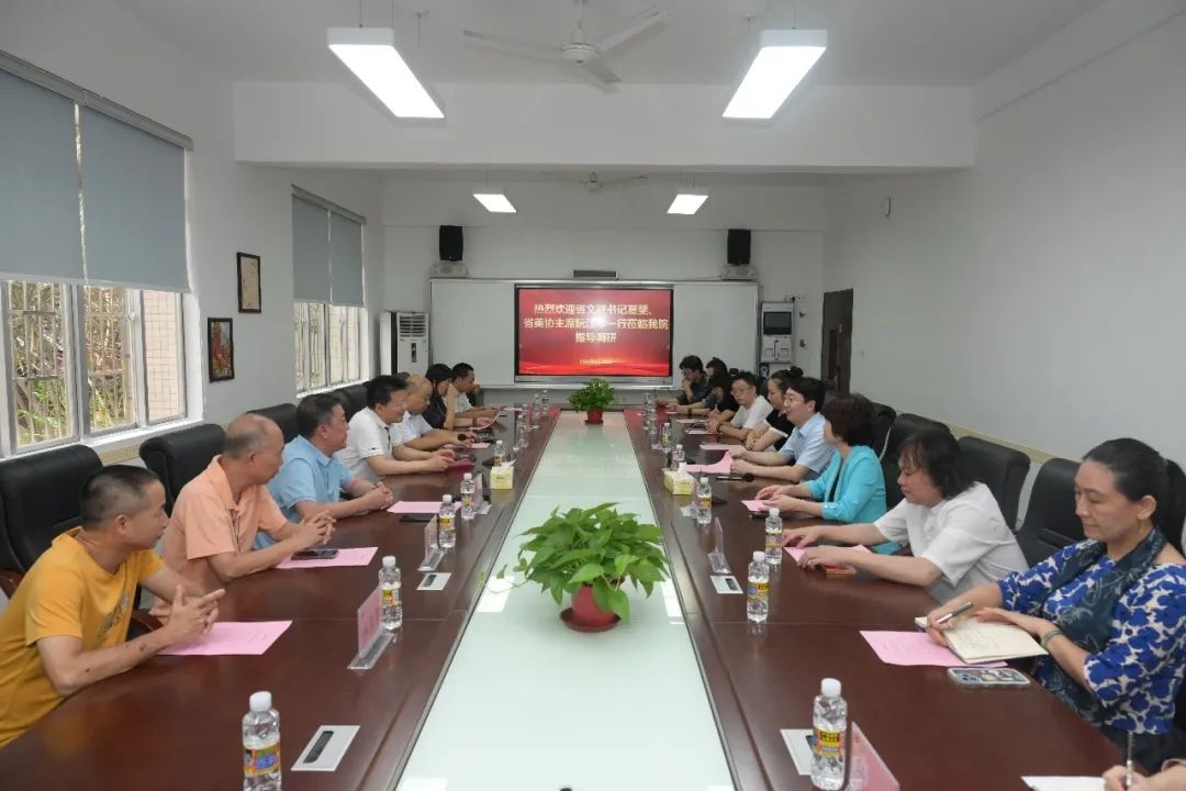 5月30日上午,省文联作协党组书记、省文联主席夏斐一行到澳门pg官方电子平台调研。观看2024届美术系本科毕业作品展,并与学院美术、音乐、舞蹈系艺术家代表座谈。学院党委书记何映敏、院长郑立波、副院长袁琳陪同。