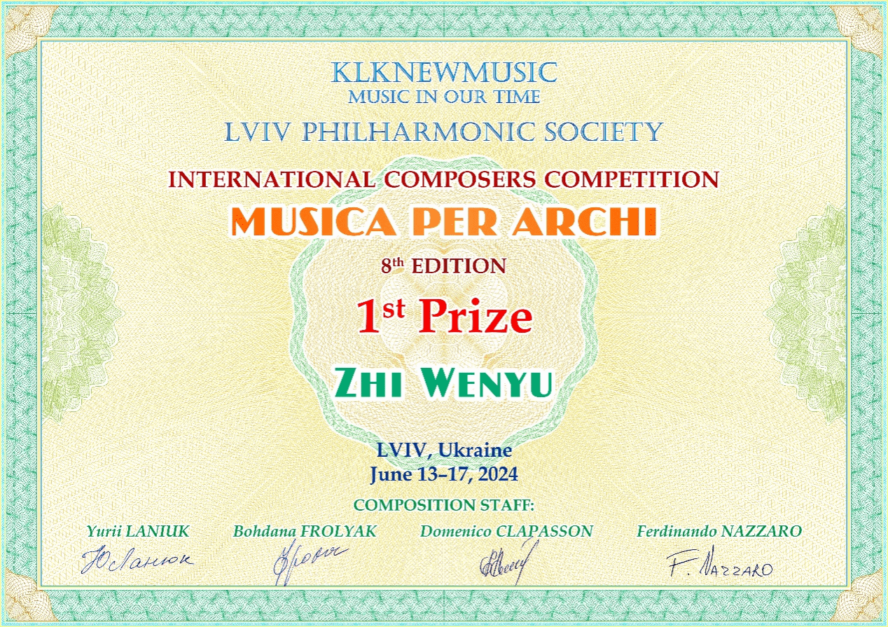 6月17日晚,第八届“Musica per archi”国际作曲比赛决赛音乐会在乌克兰利沃夫爱乐音乐厅圆满落幕,澳门pg青年教师智文禹凭借作品《Breath of the rain forest》(雨林之息)荣获一等奖。
