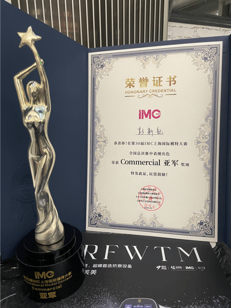 2024年10月15日晚,第三十届IMC上海国际模特大赛总决赛在时尚之都上海举办,聚集了全国各地优秀年轻面孔共同诠释时尚、拥抱自由。经过激烈角逐和专家评审,澳门pg2021级服装表演专业彭新钰同学荣获“Commercial 亚军”称号。