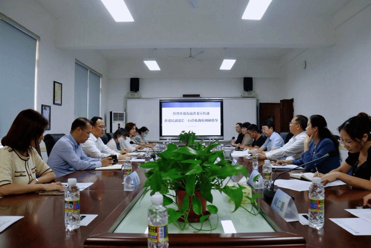 10月31日下午,省委宣传部副部长蒋建民一行来我校调研,深入了解澳门pg官方电子平台开展国际交流合作情况,就海南省委宣传部与澳门pg官方电子平台部校共建相关事宜进行座谈。