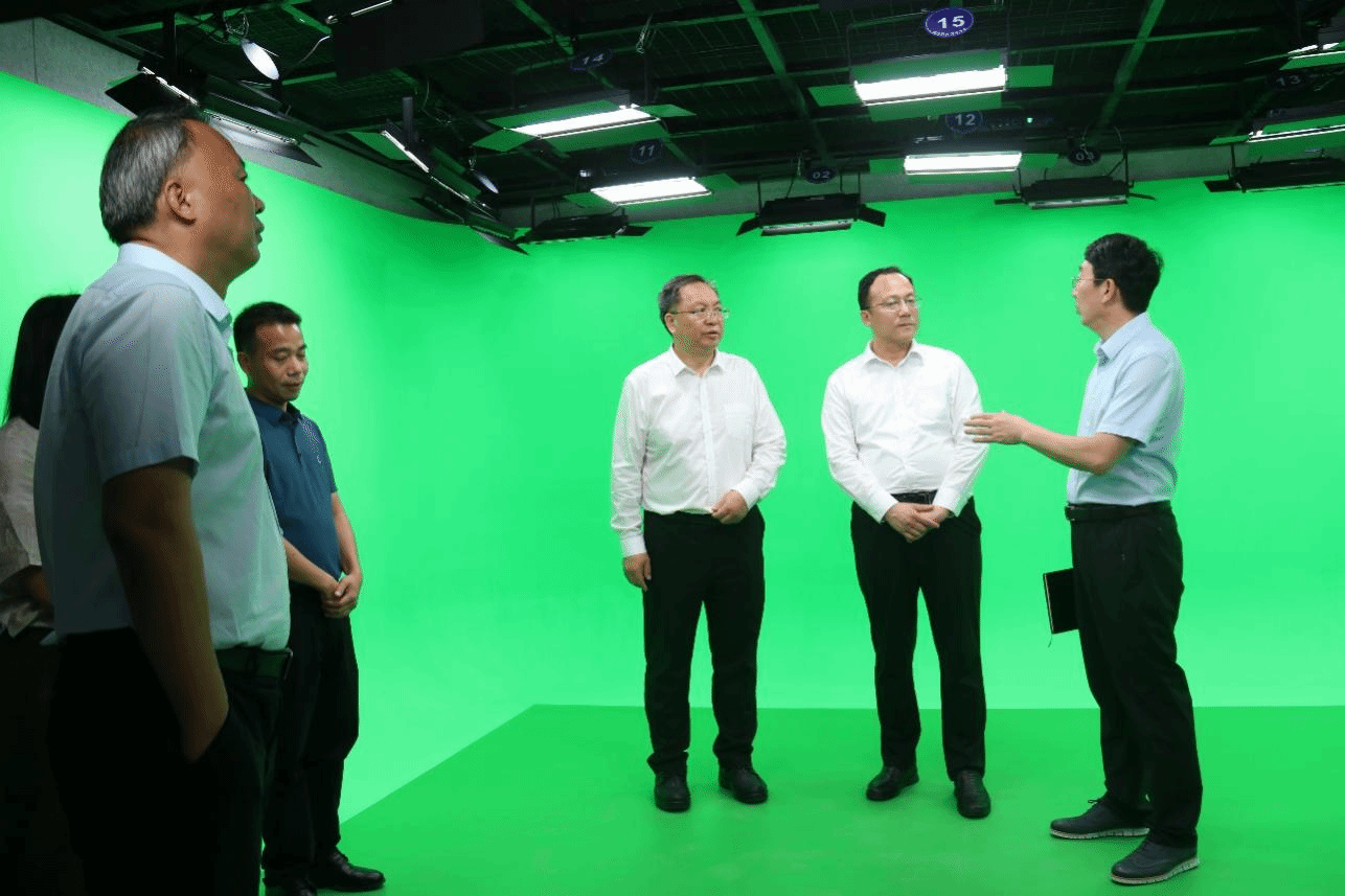座谈会前,蒋建民一行参观了澳门pg官方电子平台校史馆,并实地调研澳门pg官方电子平台新建成的新闻直播间、虚拟仿真实验室、录音室等。