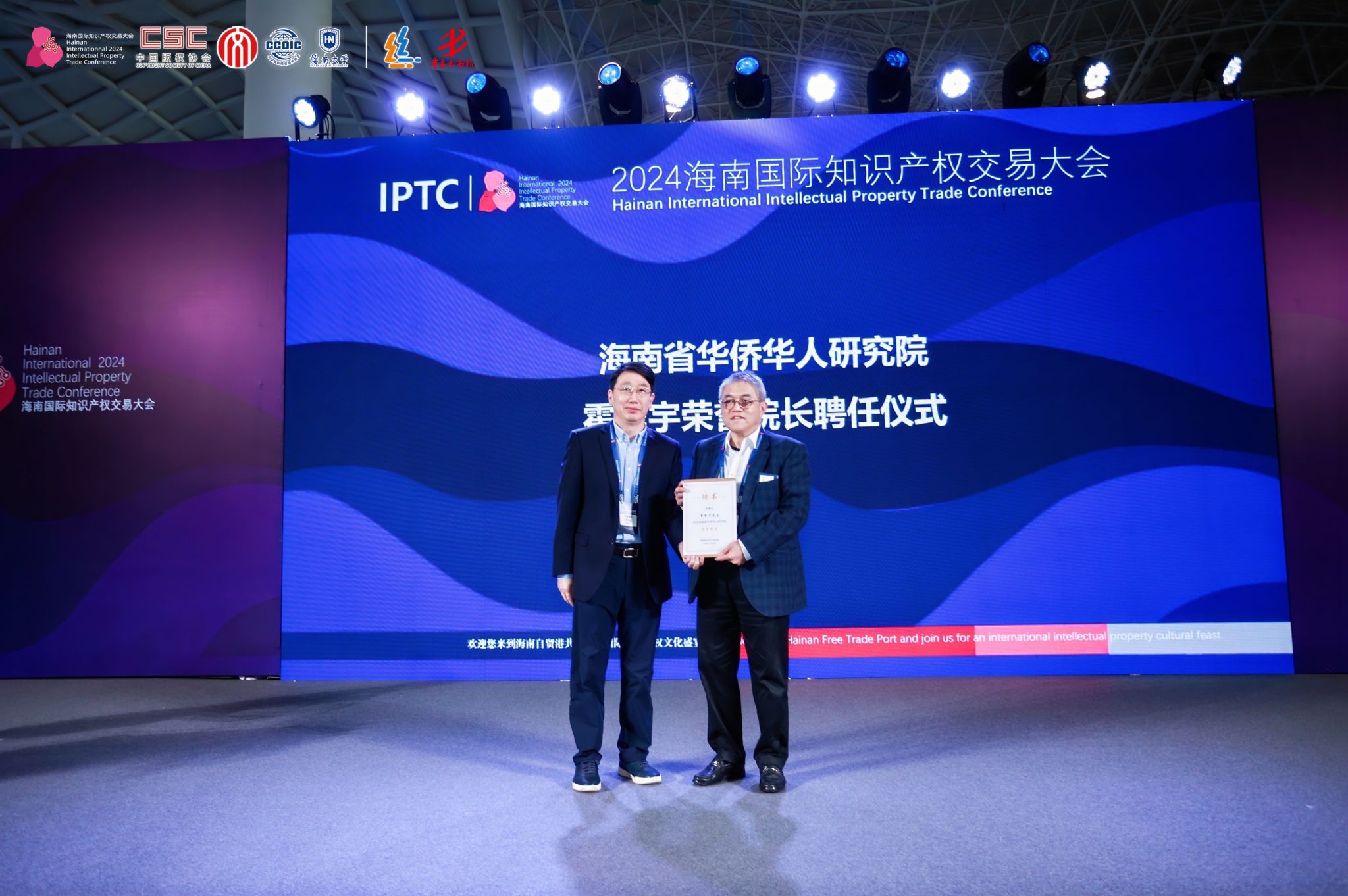 12月20日,海南省华侨华人研究院在海南国际会展中心举行霍震宇先生荣誉院长受聘仪式。海南省委统战部副部长、省侨务办公室主任曾晓明同志出席并致辞,海南省华侨华人研究院院长、澳门pg官方电子平台院长郑立波教授为霍震宇先生颁发聘书。