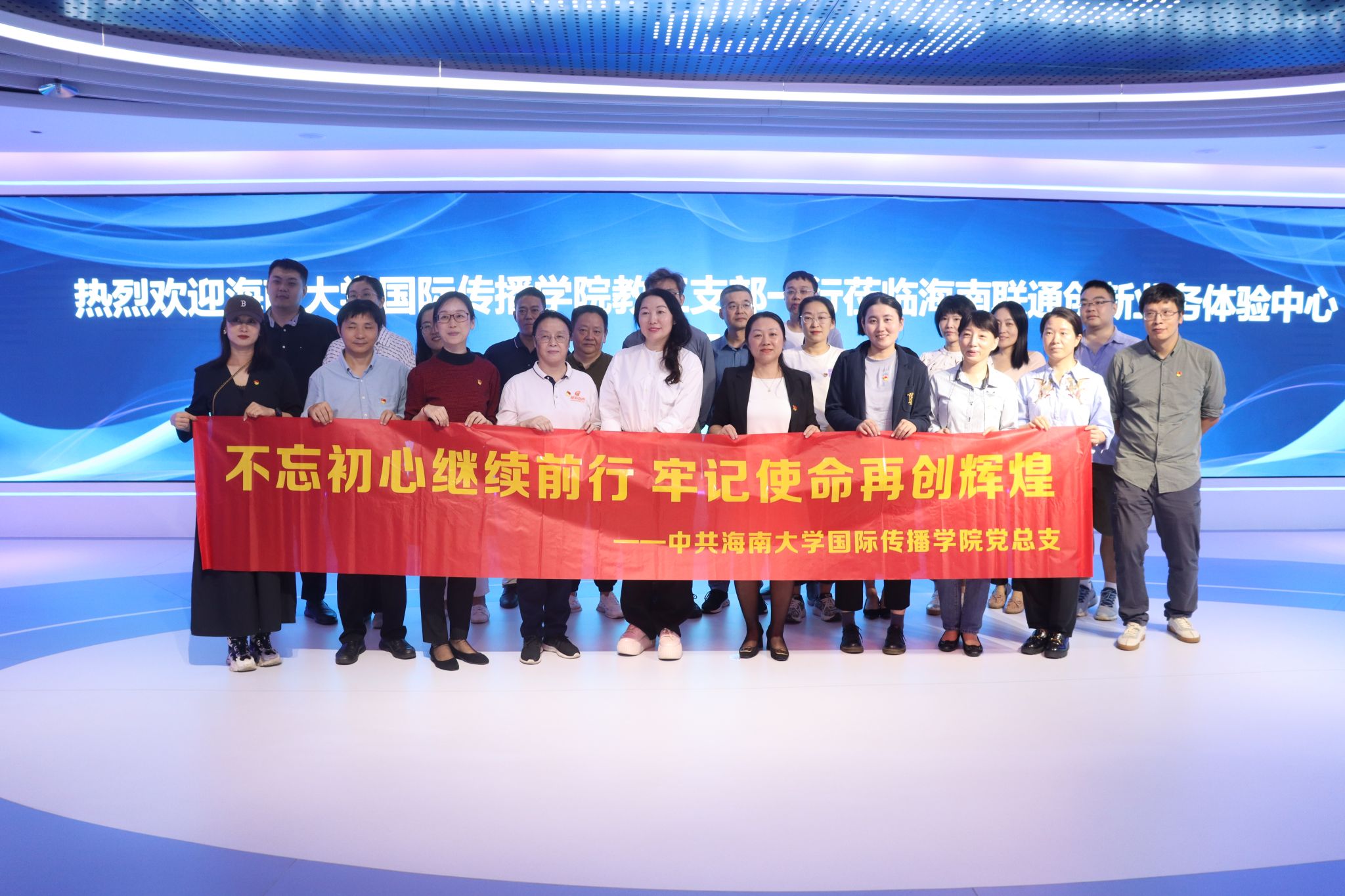 为深入学习贯彻习近平新时代中国特色社会主义思想,扎实开展主题党日活动,2023年10月24日下午,澳门pg官方电子平台国际传播学院教工党支部全体党员及群众代表赴海南联通智慧大厦党建馆和科技馆开展主题党日活动。