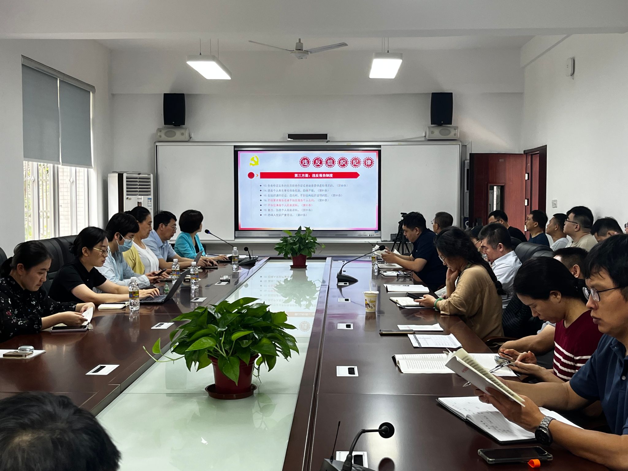 5月24日上午,澳门pg官方电子平台(国际数字影视学院)党纪学习教育专题党课在田家炳楼102举行,全体教工党员参加学习,专题党课由党委书记何映敏主讲。