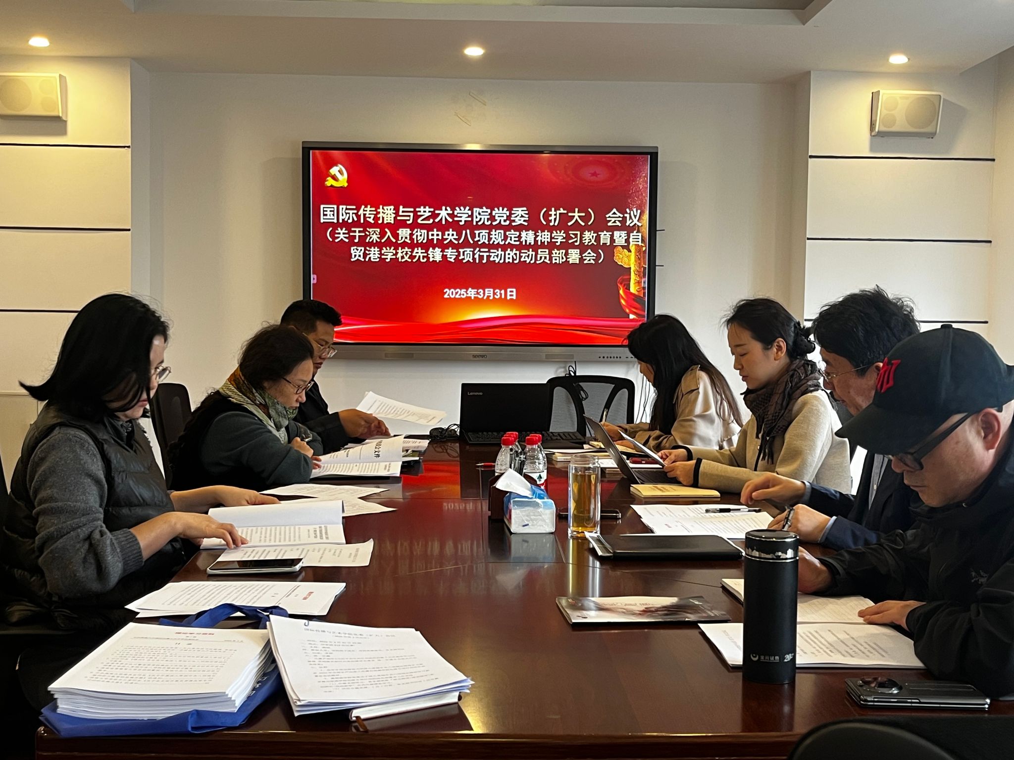 2025年3月31日下午,澳门pg官方电子平台在田家炳楼412会议室召开党委(扩大)会议,对深入贯彻中央八项规定精神学习教育以及自贸港学校先锋专项行动展开动员部署。学院院领导、党委委员、党支部书记参加会议,会议由学院党委副书记蒋锐主持。