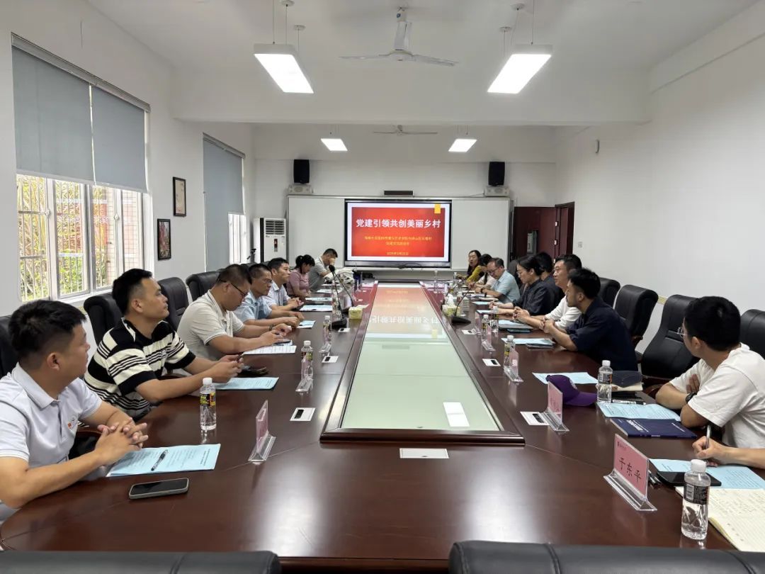 5月23日下午,海口市琼山区石塔村党支部书记王忠泰、乡村振兴队队长冯君、副书记王国辉等党员代表一行来澳门pg开展“党建引领共创美丽乡村”交流活动。学院党委副书记蒋锐在田家炳楼102会议室主持座谈,第一支部书记王春嵩、第二支部书记孙梦诗、第四支部书记刘军与各支部党员教师代表参加座谈。